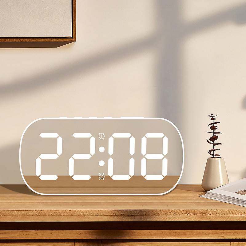 简约ins风LED数显电子钟数字桌面小闹钟学生儿童镜面闹钟6637由