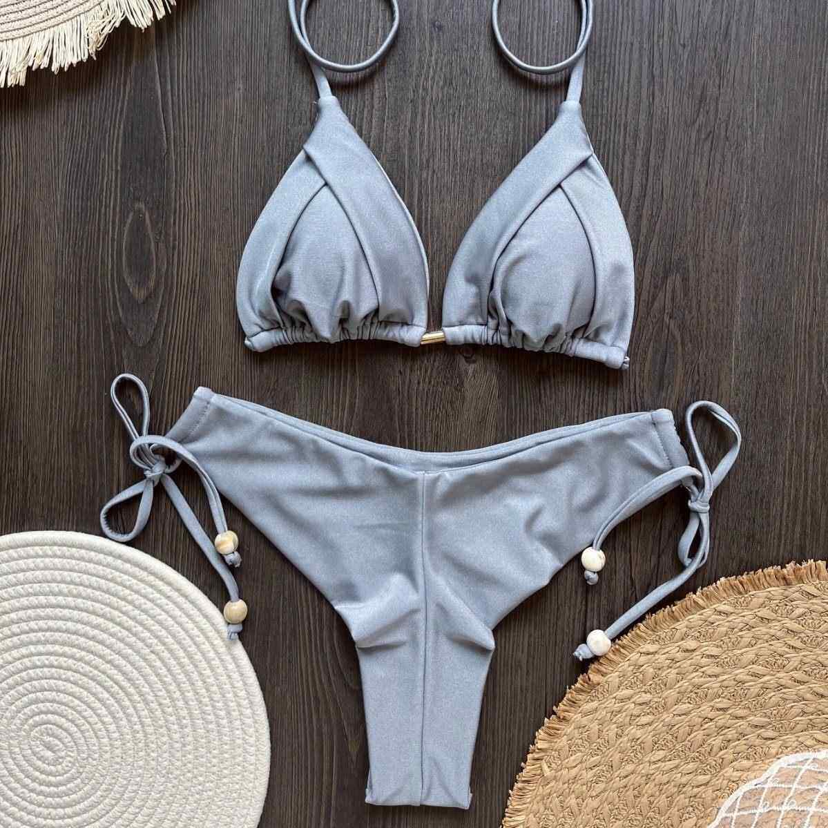set系带抽绳比基尼分体套装 Lace split swimsuit drawstring