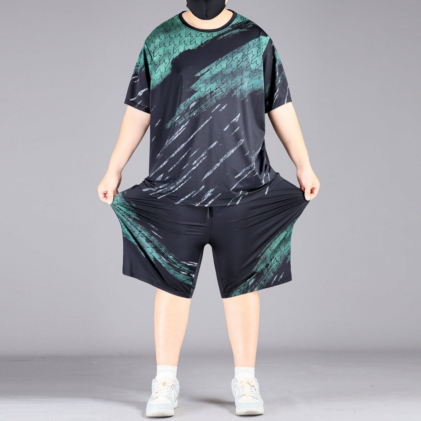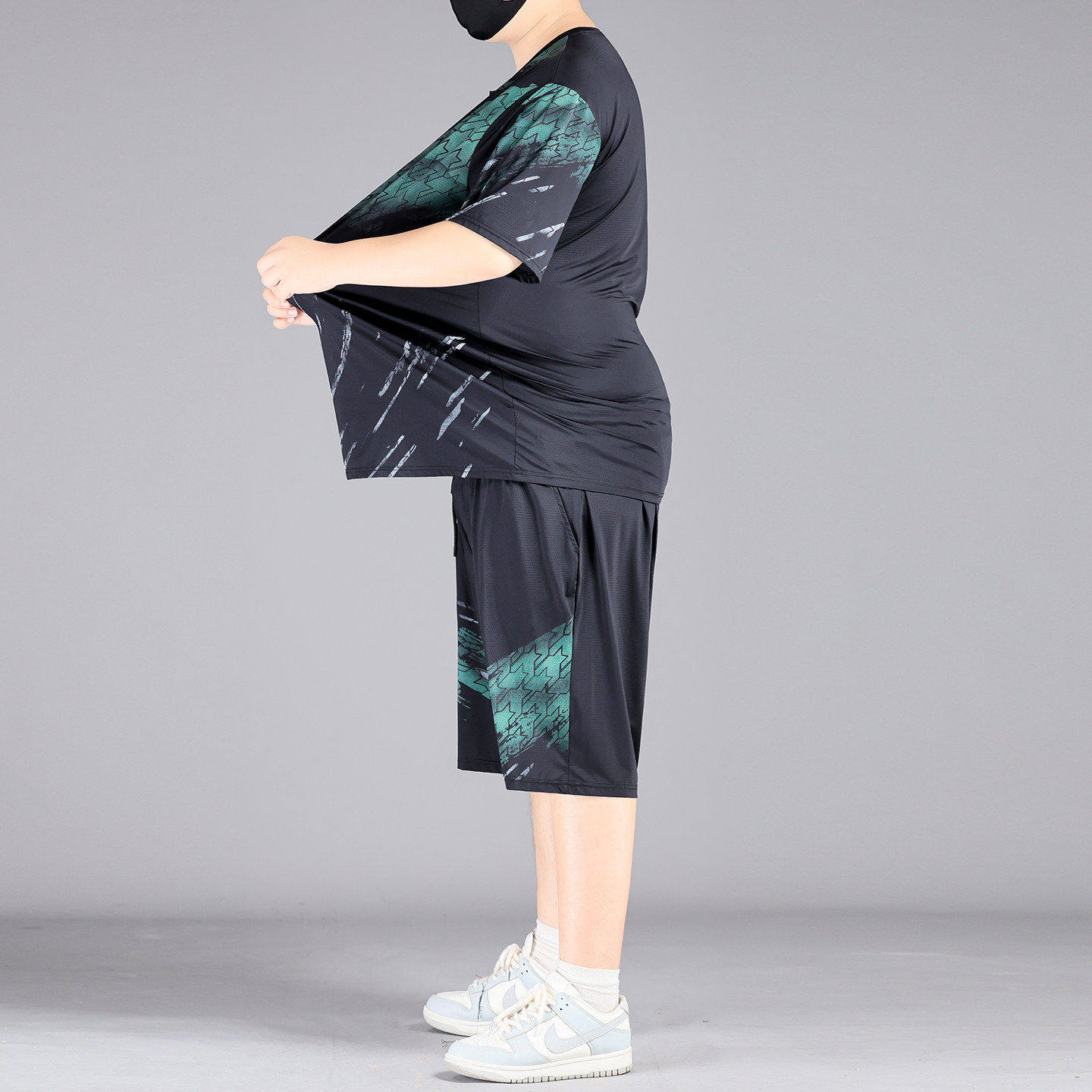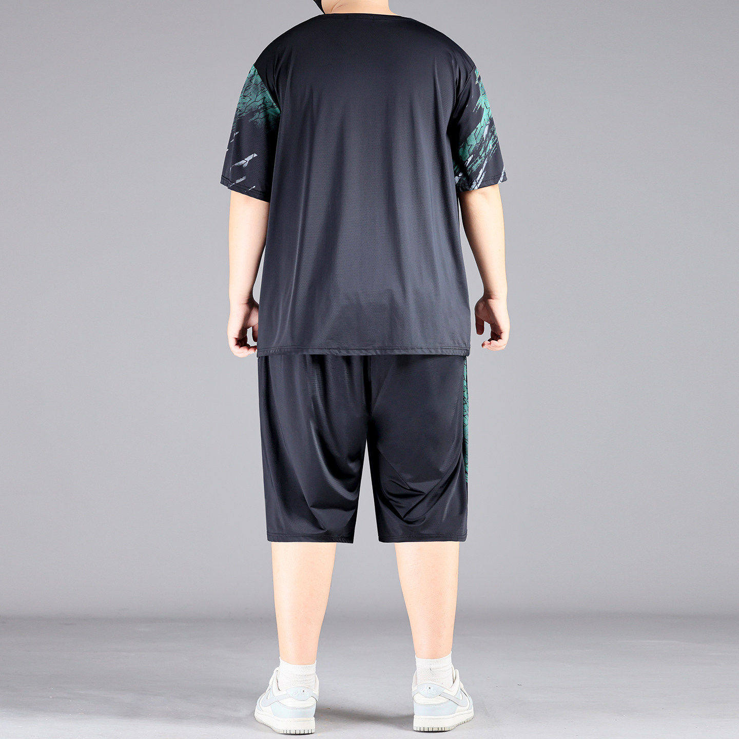 薄款 男夏季 冰丝套装 两件套 T恤肥佬男装 休闲运动短裤 宽松短袖 大码