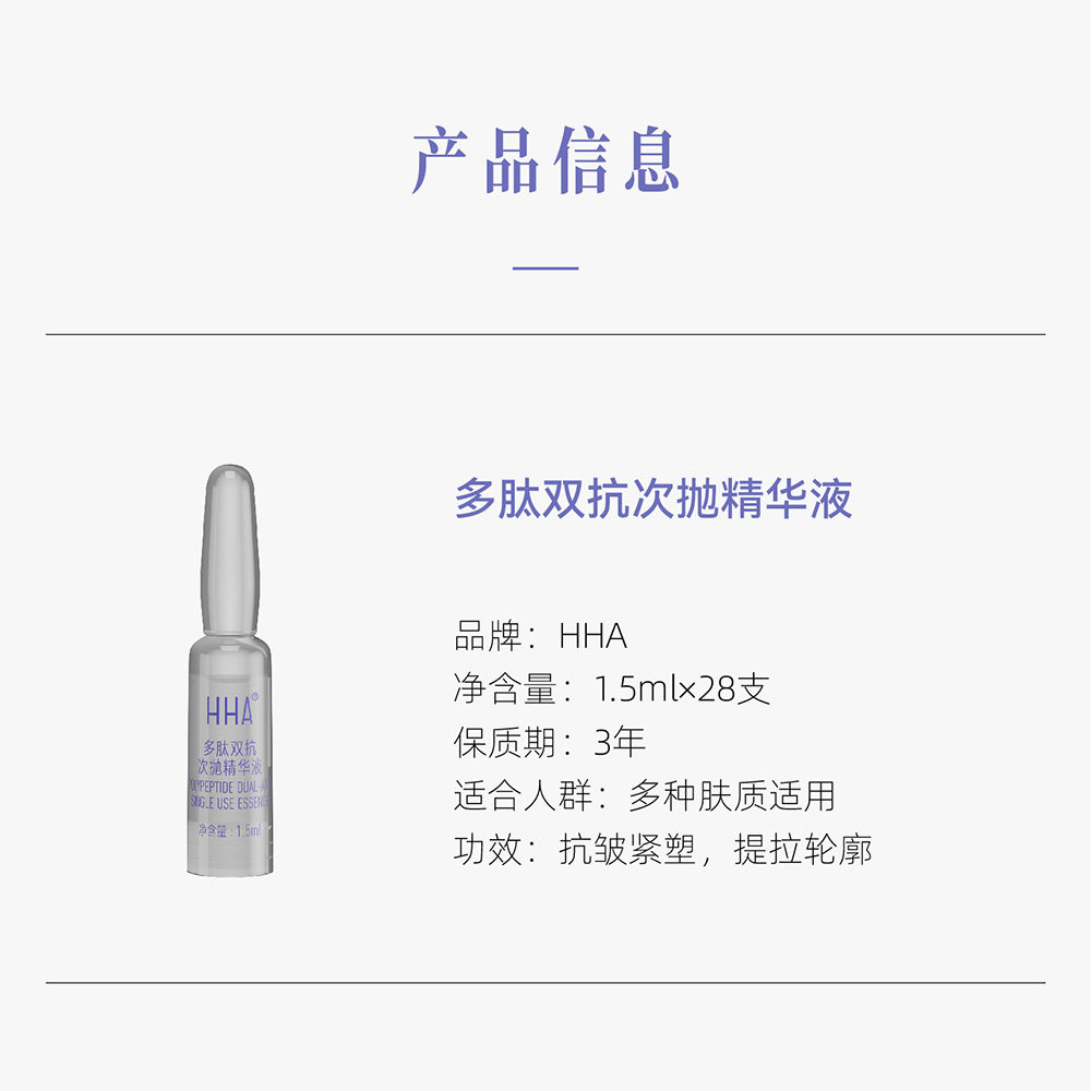 为您提供商品HHA多肽双抗次抛精华液 抵抗初老 提拉紧致淡纹的详细介绍,