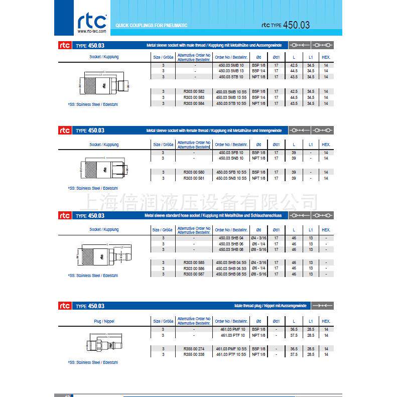 为您提供商品倍润RTC快速接头RTC450.03系列替换Staubli的详细介绍,