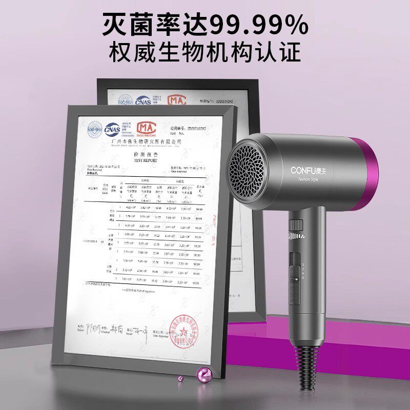 康夫电吹风机家用负离子护发专用大功率速干宿舍用学生可折叠风筒