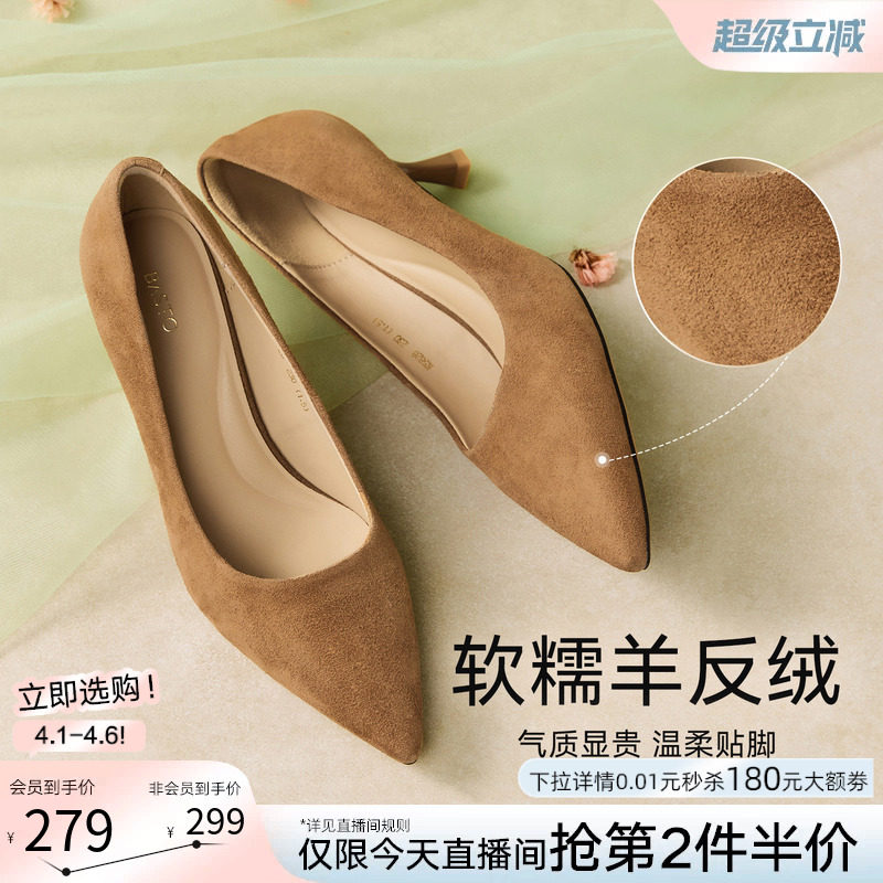 为您提供商品尖头女浅口细跟单鞋 K5828AQ6 通勤羊皮小猫跟高跟鞋 百思图26春新款的详细介绍,