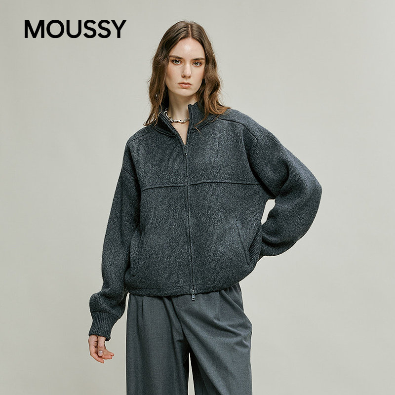 休闲通勤风立领双拉链针织毛衣010IA170 3911 春季 MOUSSY由