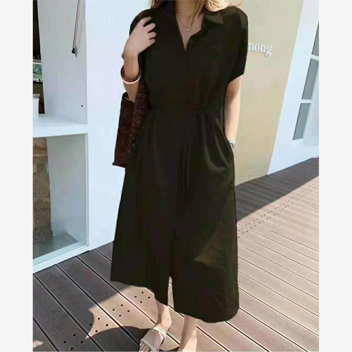 2023夏韩版 宽松短袖 POLO领衬衫 裙 连衣裙 单排扣系带棉麻中长款由