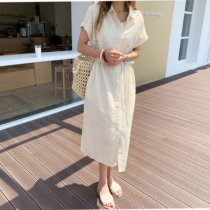 为您提供商品2023夏韩版 宽松短袖 POLO领衬衫 裙 连衣裙 单排扣系带棉麻中长款的详细介绍,