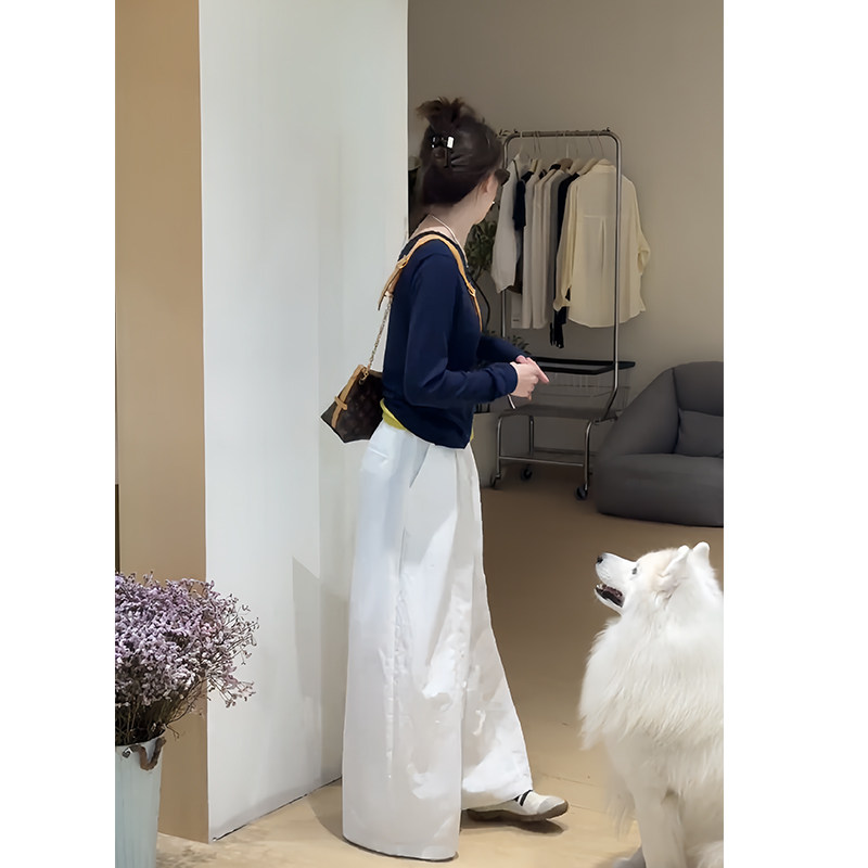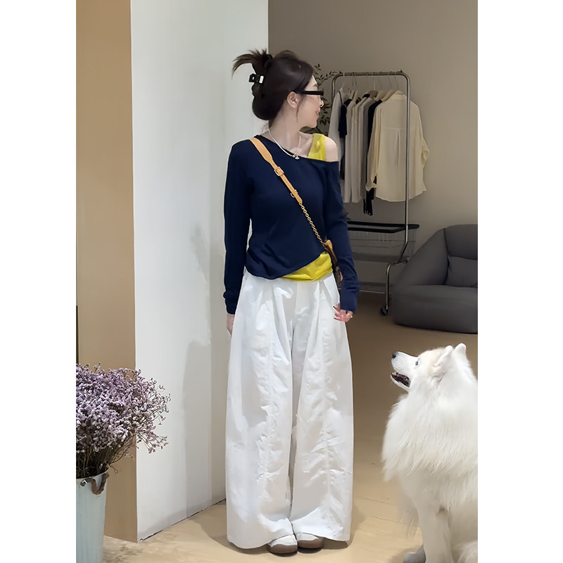 为您提供商品两件套 韩系早秋穿搭一整套气质减龄高级感斜肩针织上衣休闲阔腿裤的详细介绍,