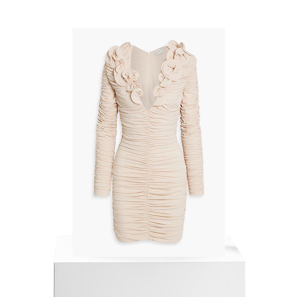 女士 1h可退 香港直邮magda butrym 饰褶皱弹性针织迷你连 花朵装由