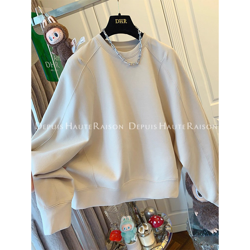 洋气上衣套头加厚绒衫 潮 全棉修身 即墨杏色圆领正肩卫衣女加绒冬季