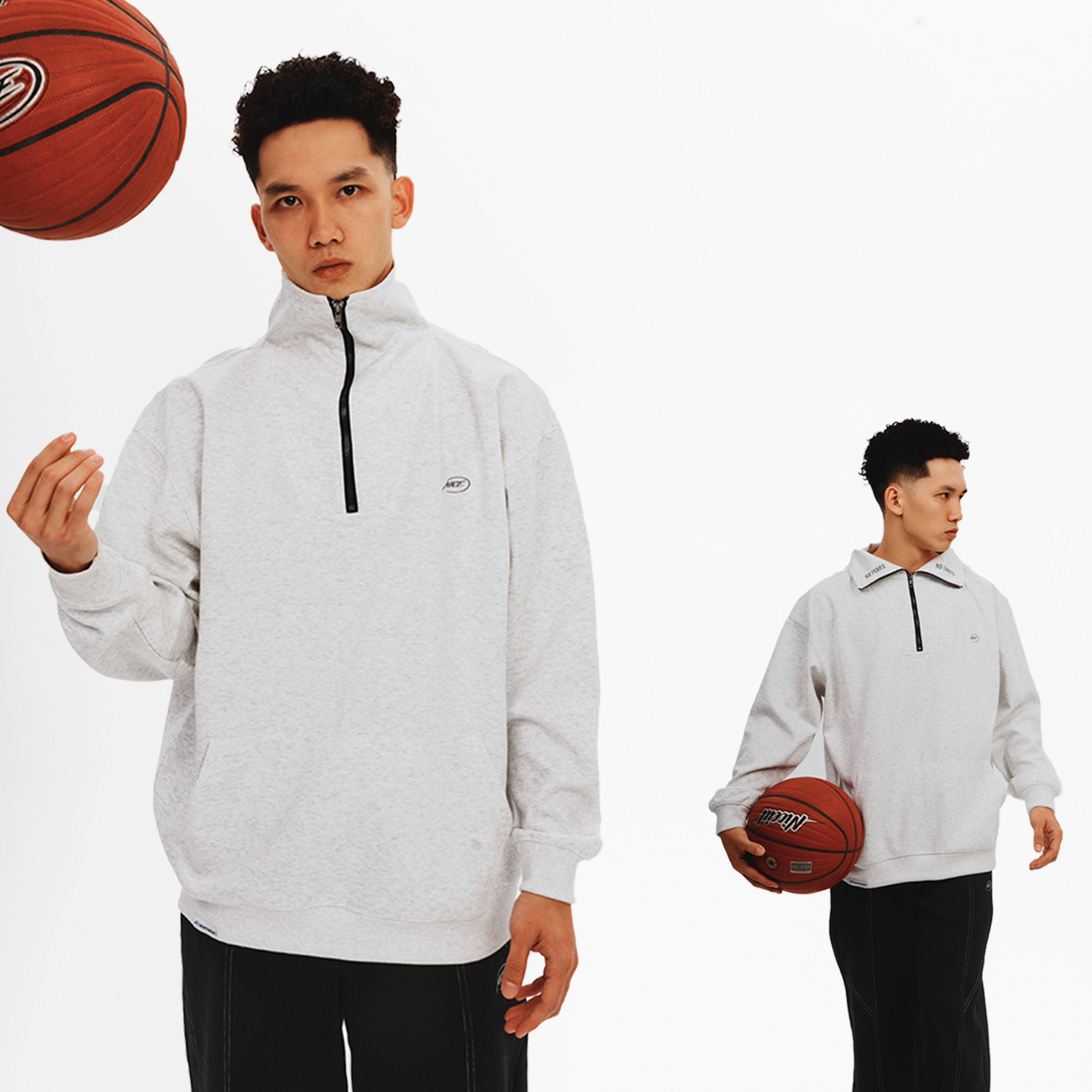 NICE简约刺绣LOGO运动立领半拉链卫衣春秋休闲宽松套头 NICEID