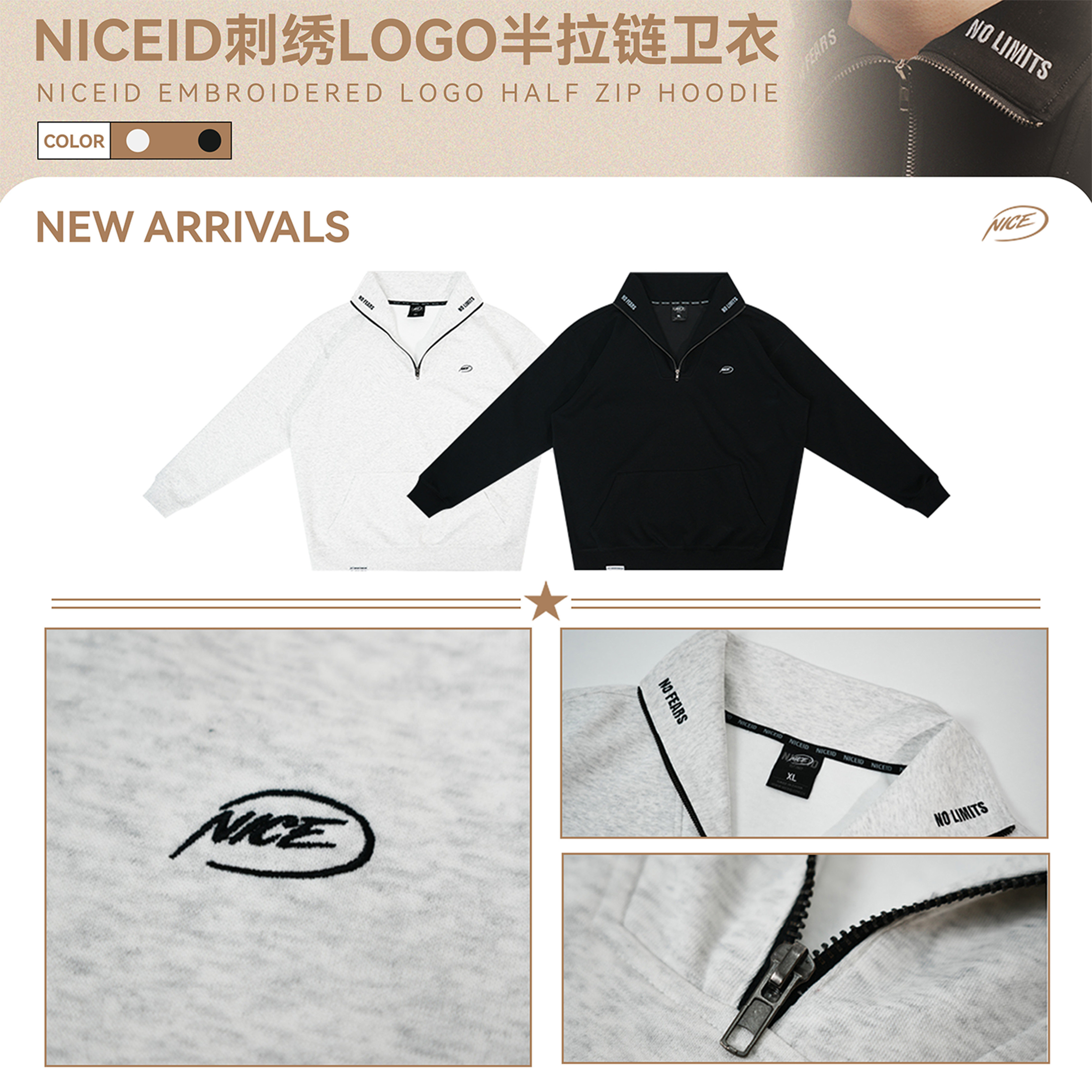 为您提供商品NICE简约刺绣LOGO运动立领半拉链卫衣春秋休闲宽松套头 NICEID的详细介绍,