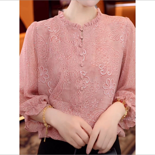 为您提供商品气质花边领粉色七分袖 女上衣春夏气质显瘦小衫 宽松印花妈妈装 衬衫的详细介绍,
