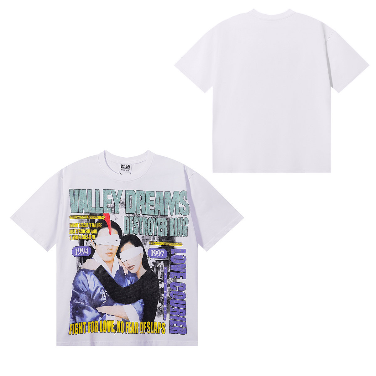 Vale 潮牌复古电影片段印花烫钻高街嘻哈纯棉短袖 T恤衫 Valley美式由