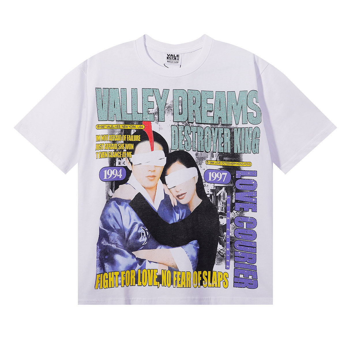 Vale 潮牌复古电影片段印花烫钻高街嘻哈纯棉短袖 T恤衫 Valley美式