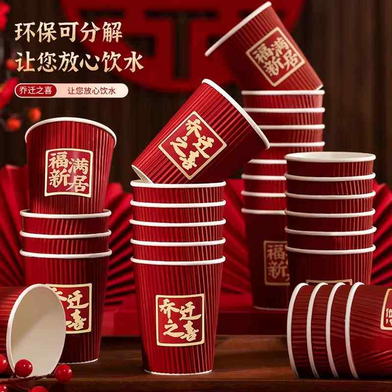 装 饰加厚一次性水杯子 饰用品大全搬家仪式 乔迁之喜纸杯新居布置装