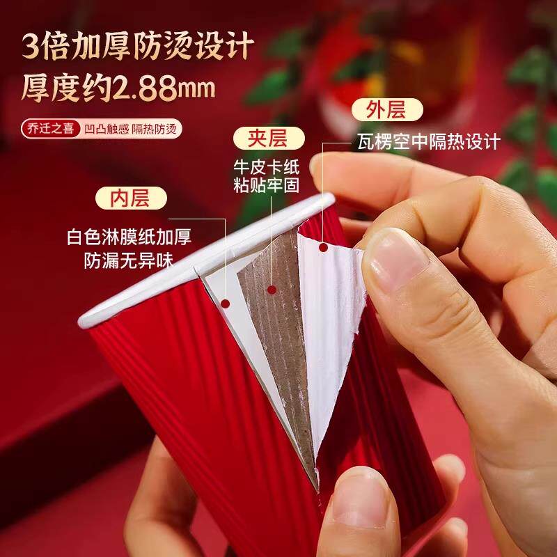 一次性纸杯加厚新年国潮可爱杯子家用商用卡通水杯咖啡杯食品级