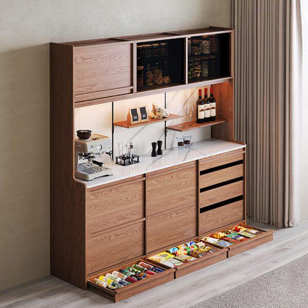 暮岩板餐边柜靠墙一体美洲胡桃橱柜收纳储物柜小户型厨房置物柜 元