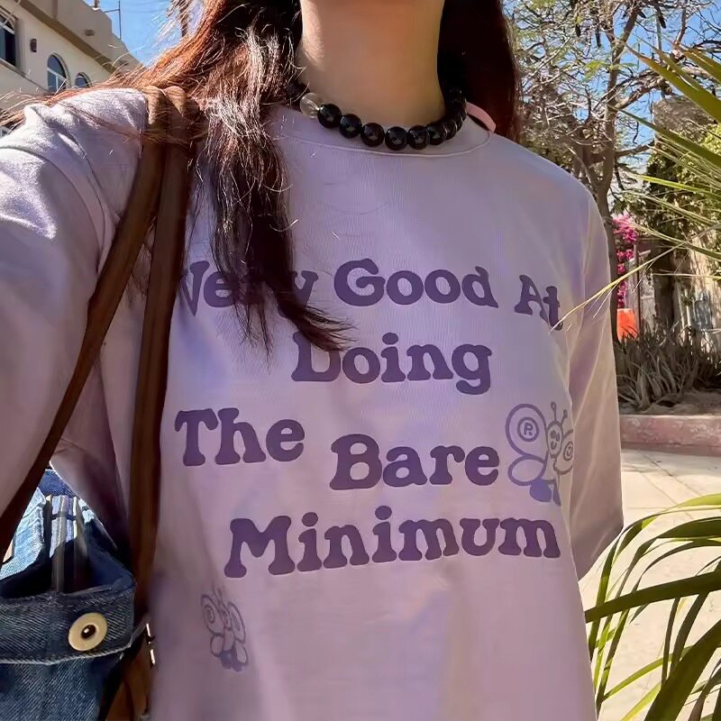 泰国潮牌 cut 淡紫色复古长款 纯棉T rough