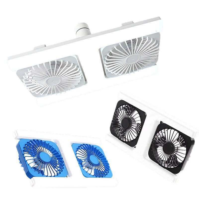 新款 吊扇灯遥控180度可调角度三色光LED静音风扇灯 E27螺口双排H款