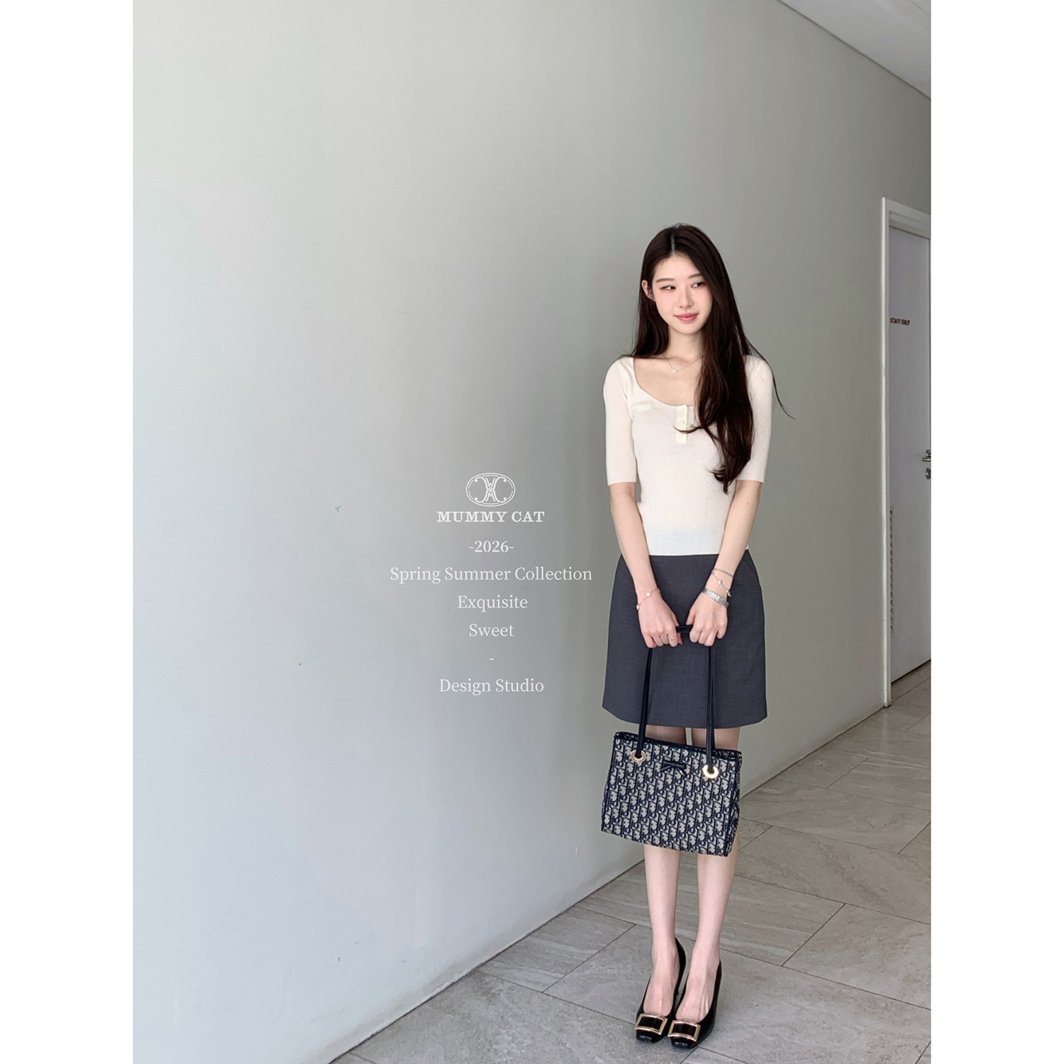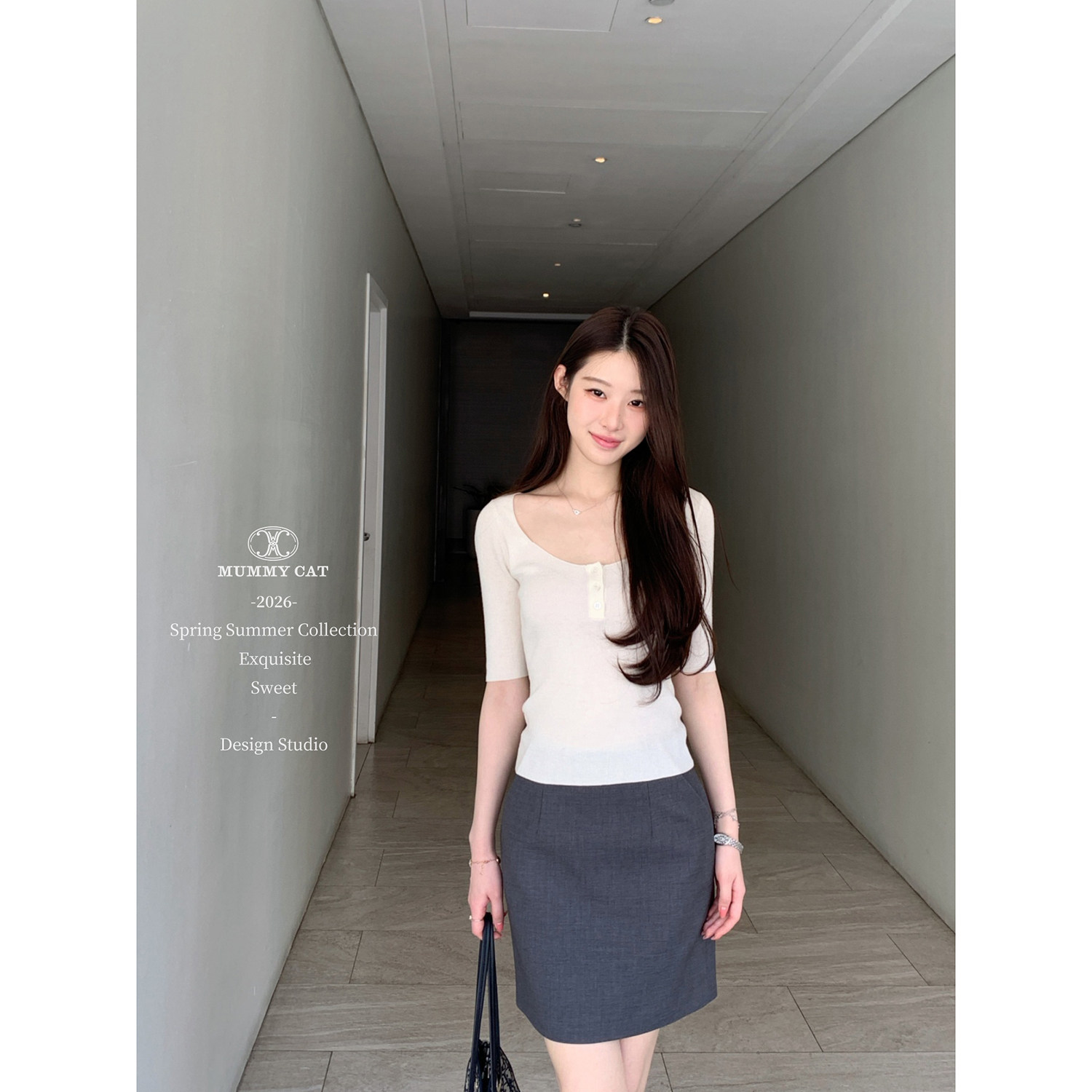温柔有力 Mummy Cat 下蛋喵 30绵羊毛混纺亨利领针织上衣 26新品由