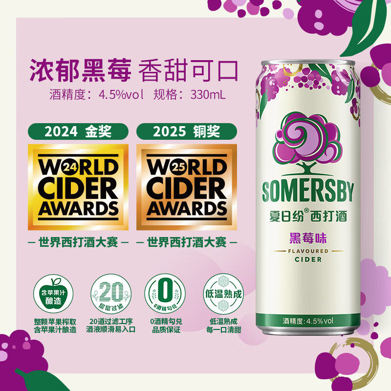 为您提供商品U先 黑莓味组合果酒甜酒低度数330ml Somersby夏日纷西打酒苹果味的详细介绍,