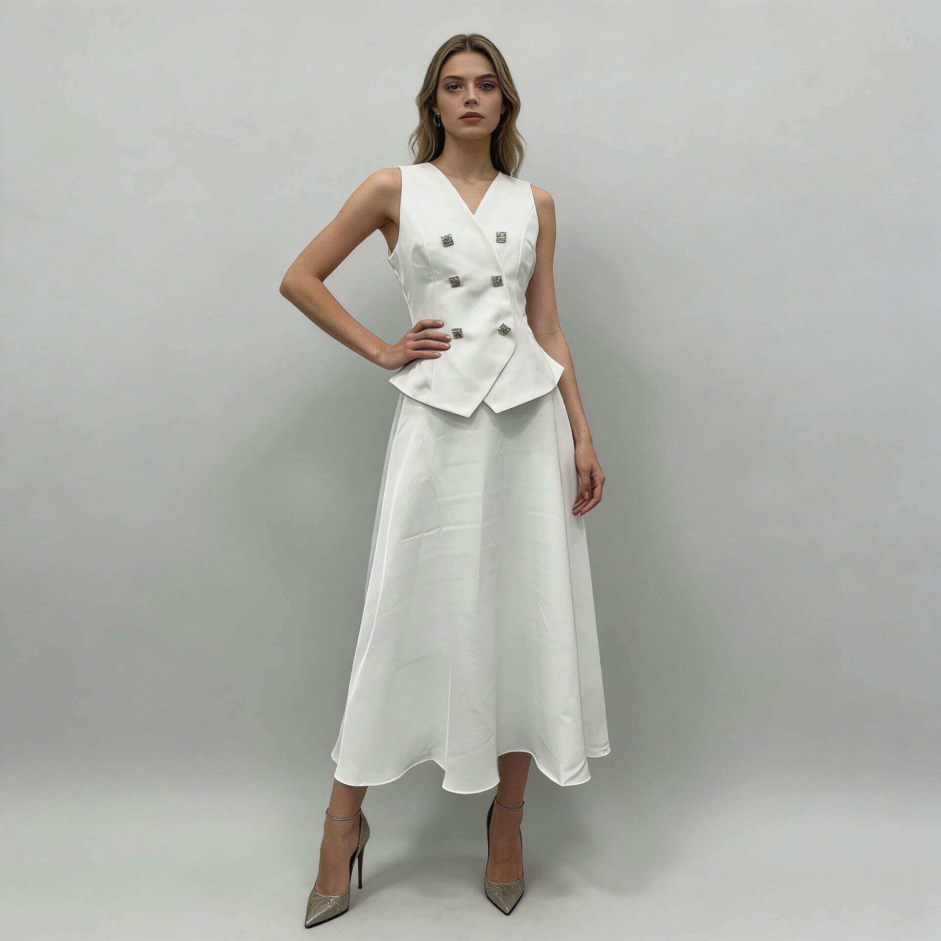 时尚 新款 法式 气质轻奢背心上衣长裙两件套洋气女2026春季 百搭套装由