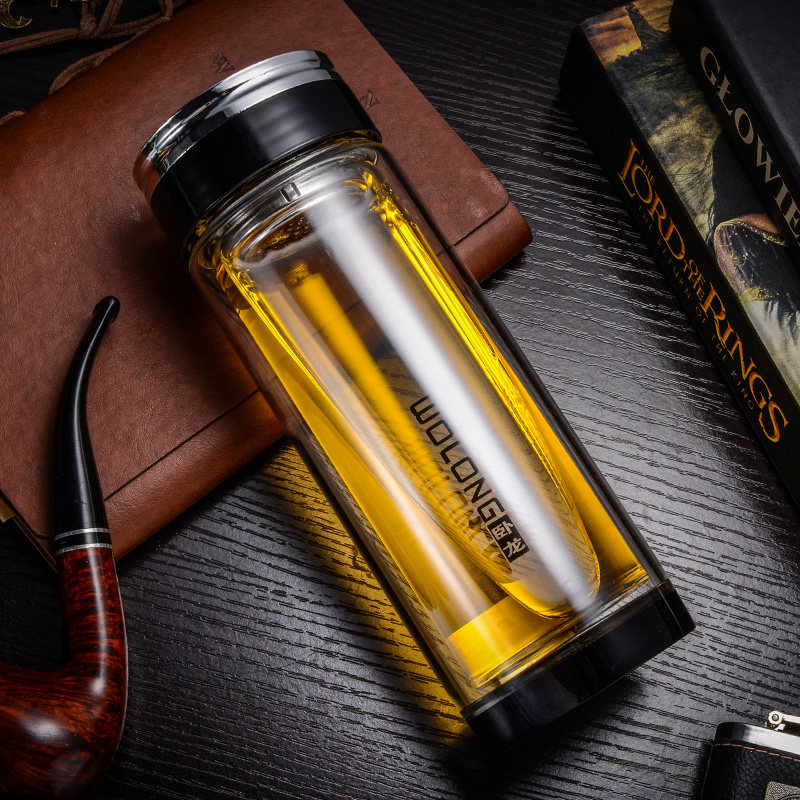 带盖家用男泡茶杯茶水分离家用耐高温 大容量双层隔热玻璃水杯男士