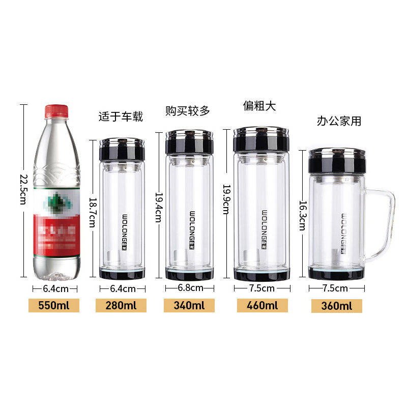 为您提供商品卧龙双层玻璃杯隔热男女水杯加厚透明茶杯钢化防摔有盖喝水口杯子的详细介绍,