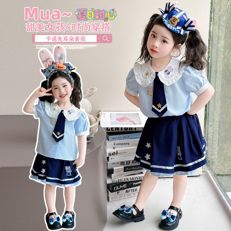 为您提供商品洋气兔子警官衣服儿童女宝宝学院风jk裙子夏装 两件套 套装 女童夏季的详细介绍,