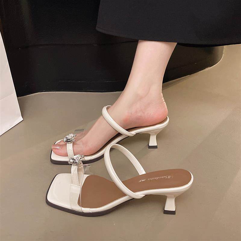 新品 套趾细跟拖鞋 女夏外穿2026新款 配裙子仙女风水钻透明高跟 法式由