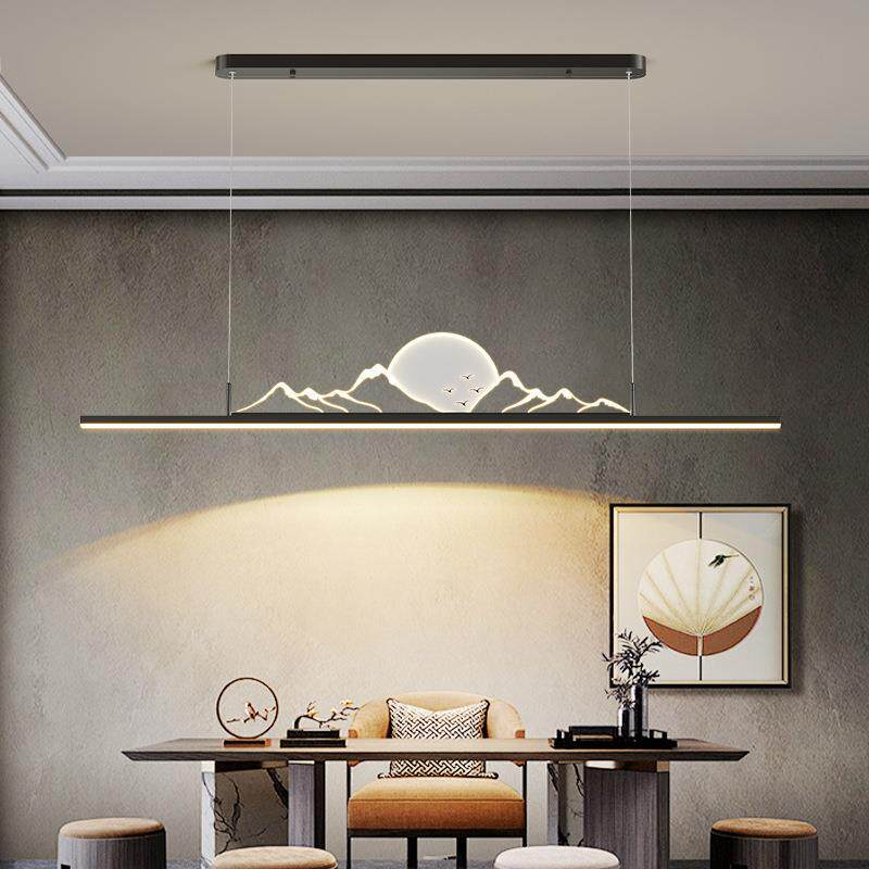 长条吊灯简约山峦映月茶室极简餐桌灯具极简设计 山水餐厅灯新中式