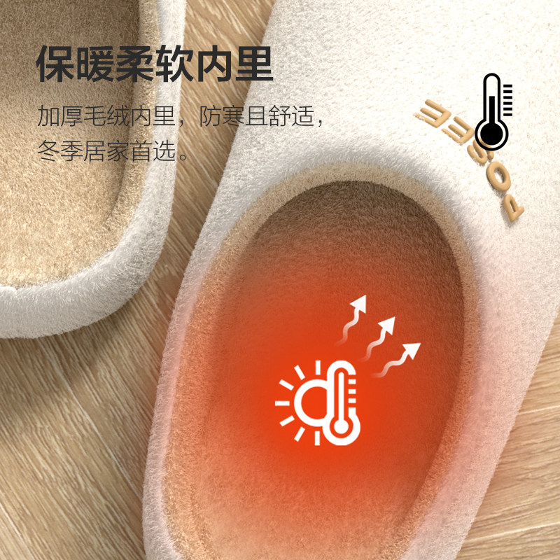 冬季 洁丽雅大码 女款 秋冬室内居家保暖情侣简约毛绒棉鞋 棉拖鞋 男士