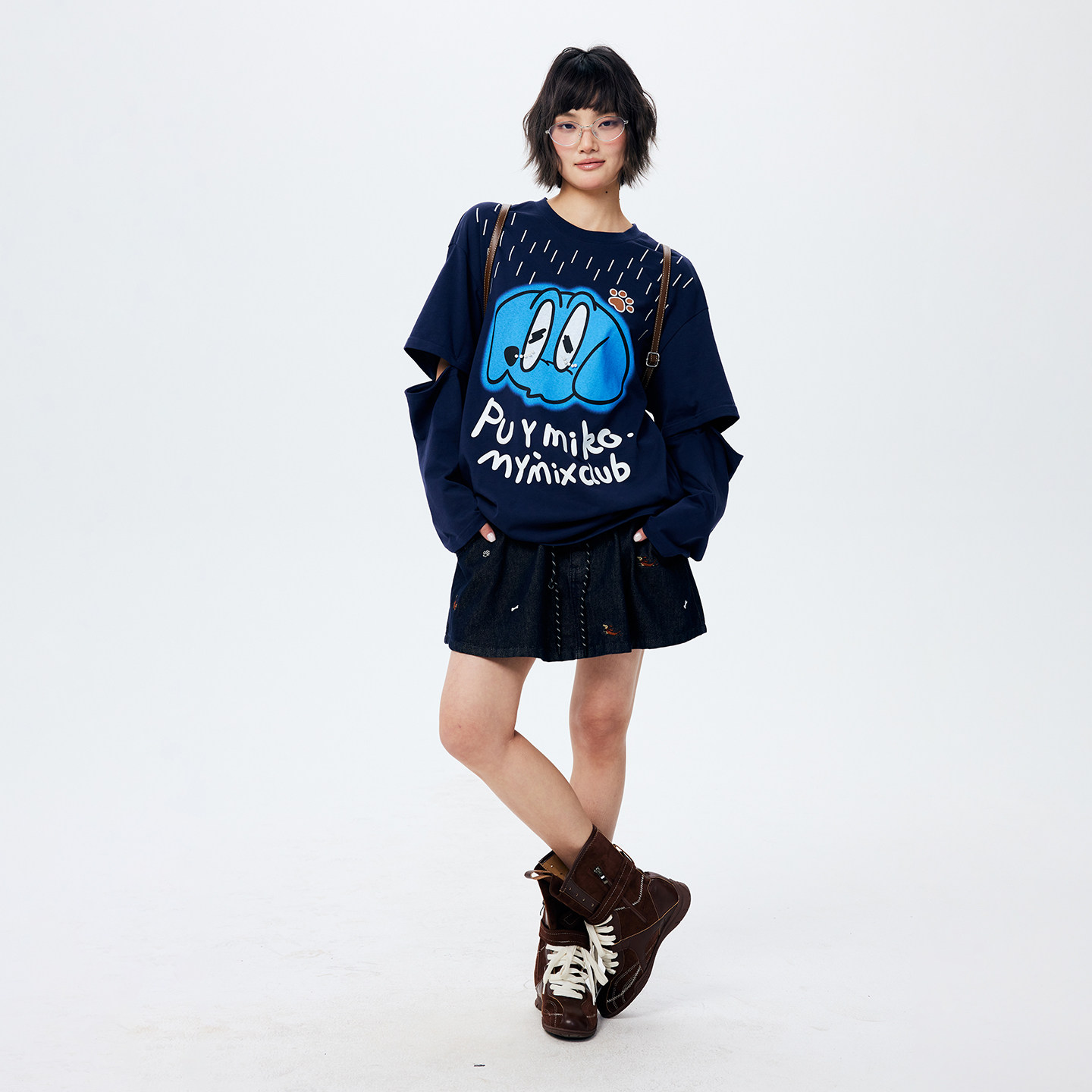 为您提供商品长袖 T恤女装 涂鸦长款 休闲风复古宽松落肩袖 26春新品 MYMIX美式的详细介绍,