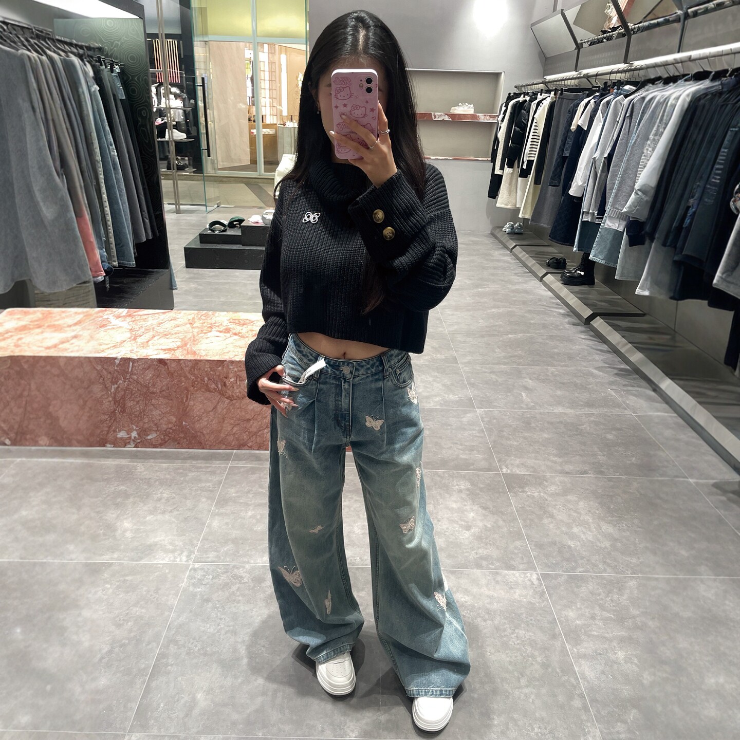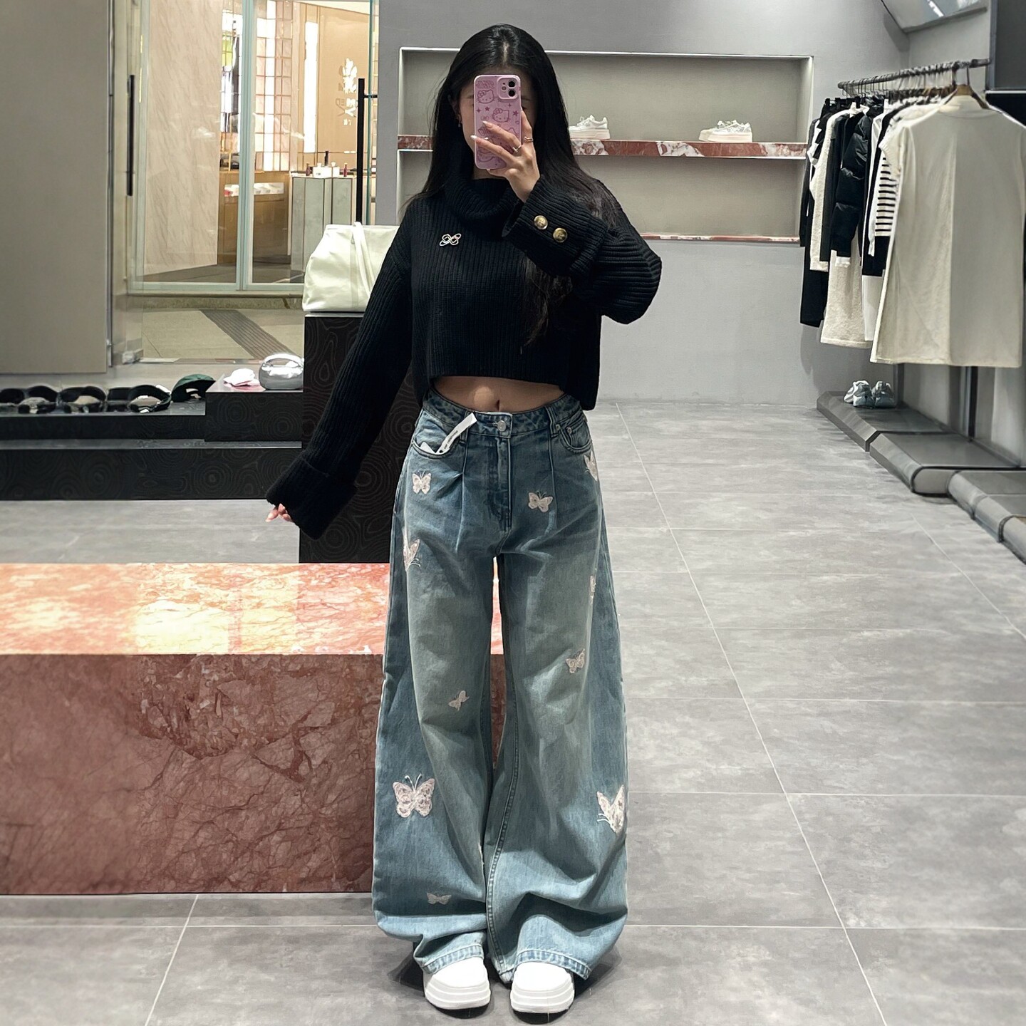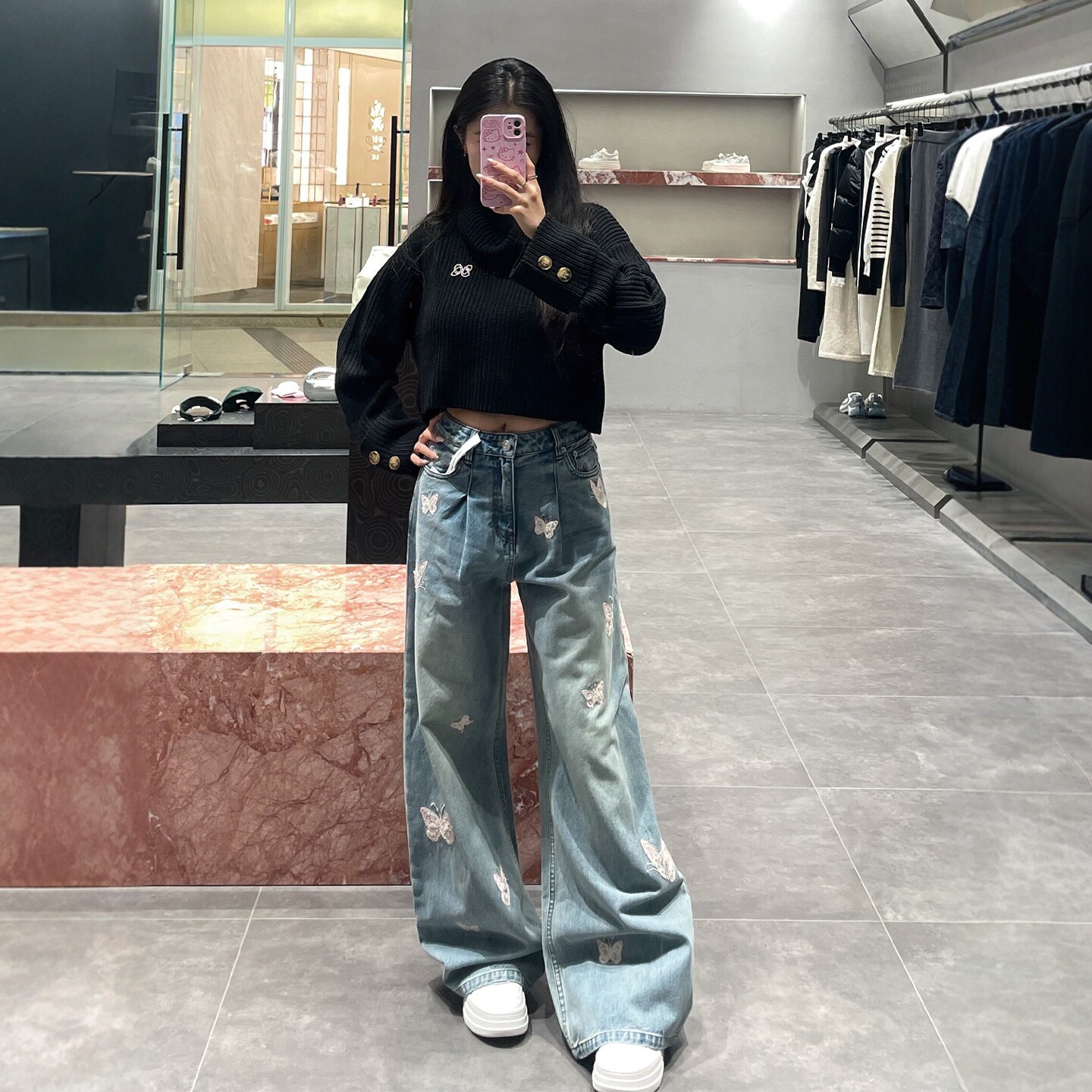 为您提供商品宽松显瘦直筒阔腿裤 子 女2026早春新款 欧美潮流蝴蝶绣花高腰牛仔裤的详细介绍,