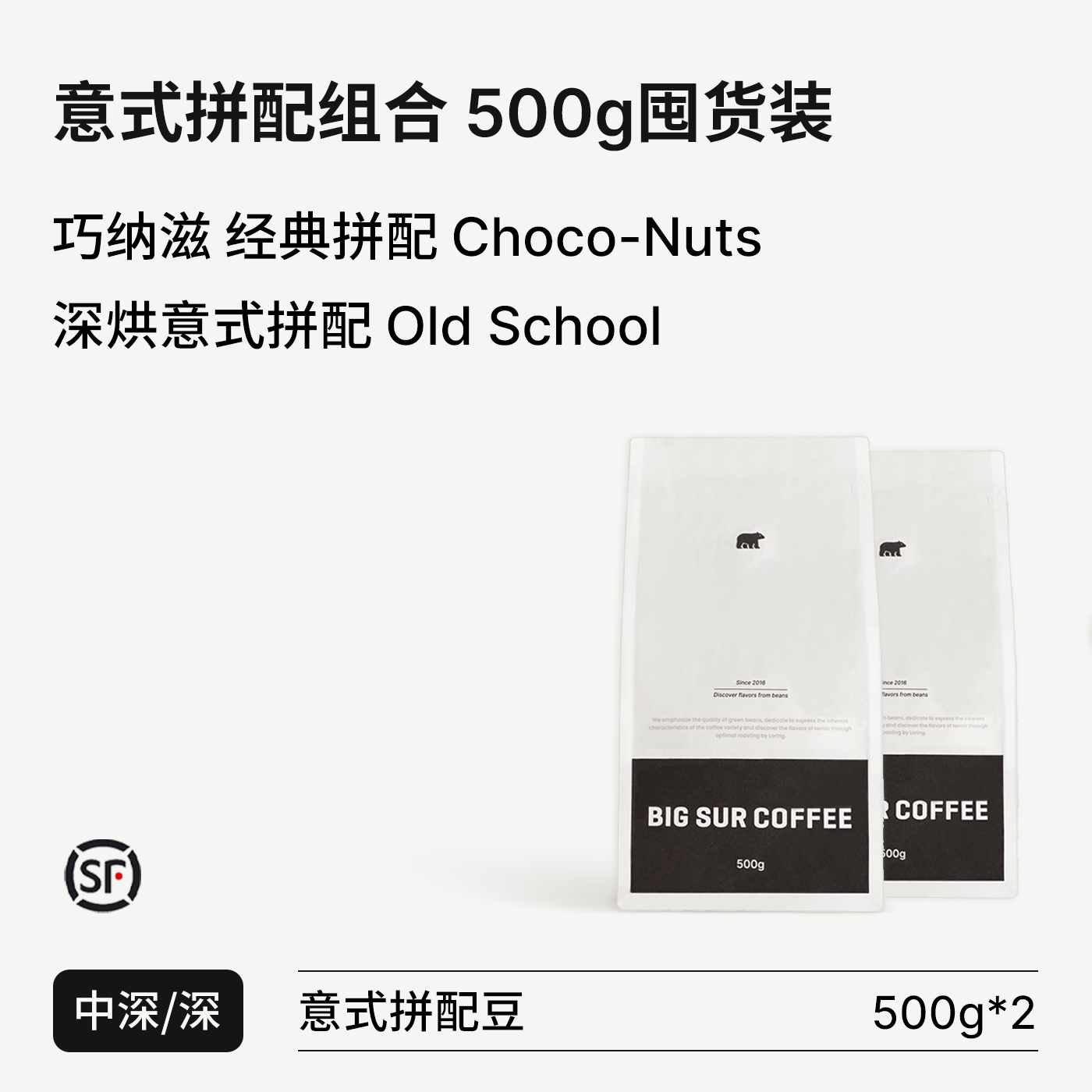 拼配组合装 意式 SUR School Nuts巧纳滋 深烘Old 中深烘Choco BIG由