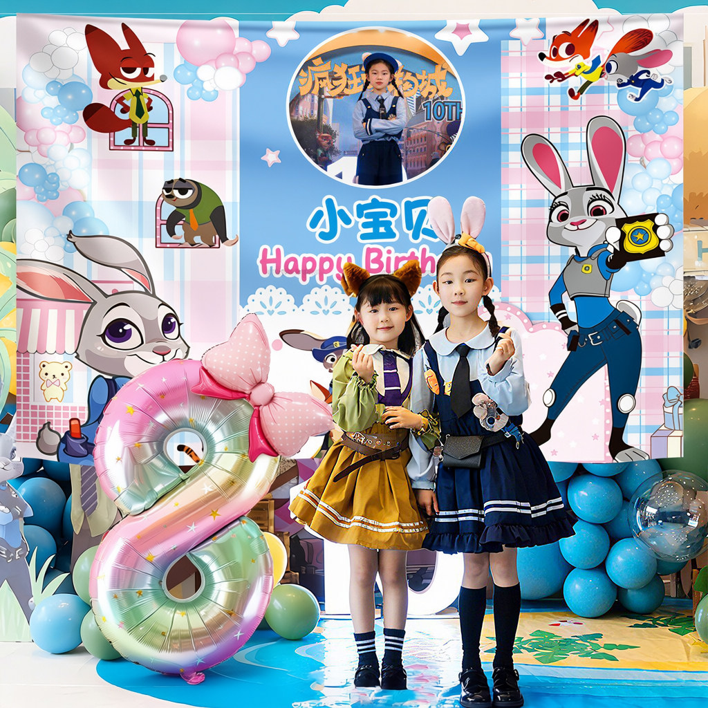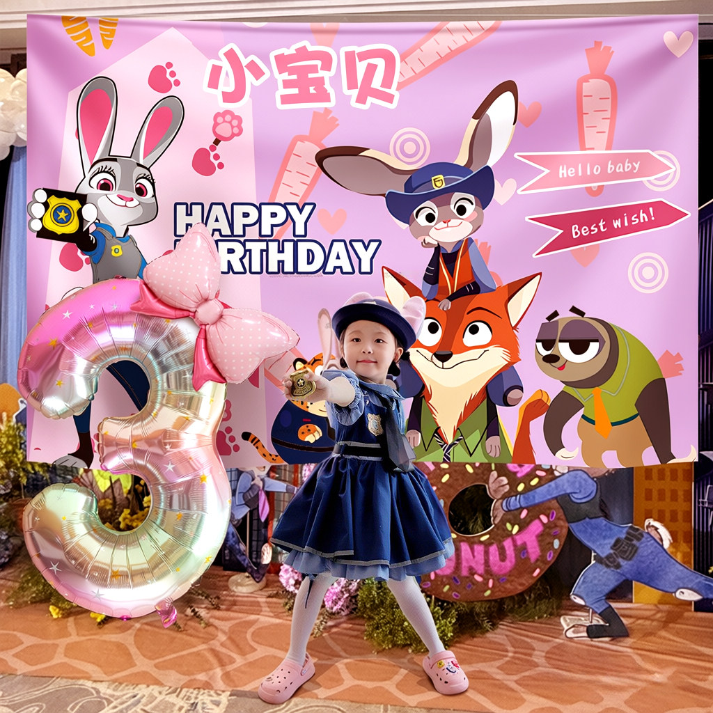 饰挂布朱迪尼克兔子警官男女孩派对条幅 疯狂动物城生日场景布置装由