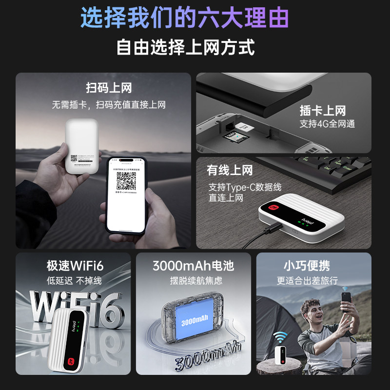 2026新款 移动随身Wifi6无线上网卡免插卡无限全国流量通用便携式 路由器宽带热点高速家庭租房宿舍 3C认证