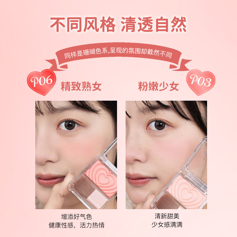 CANMAKE单色爱心腮红粉珠光胭脂膨胀色紫色橘色胭脂日常 新色