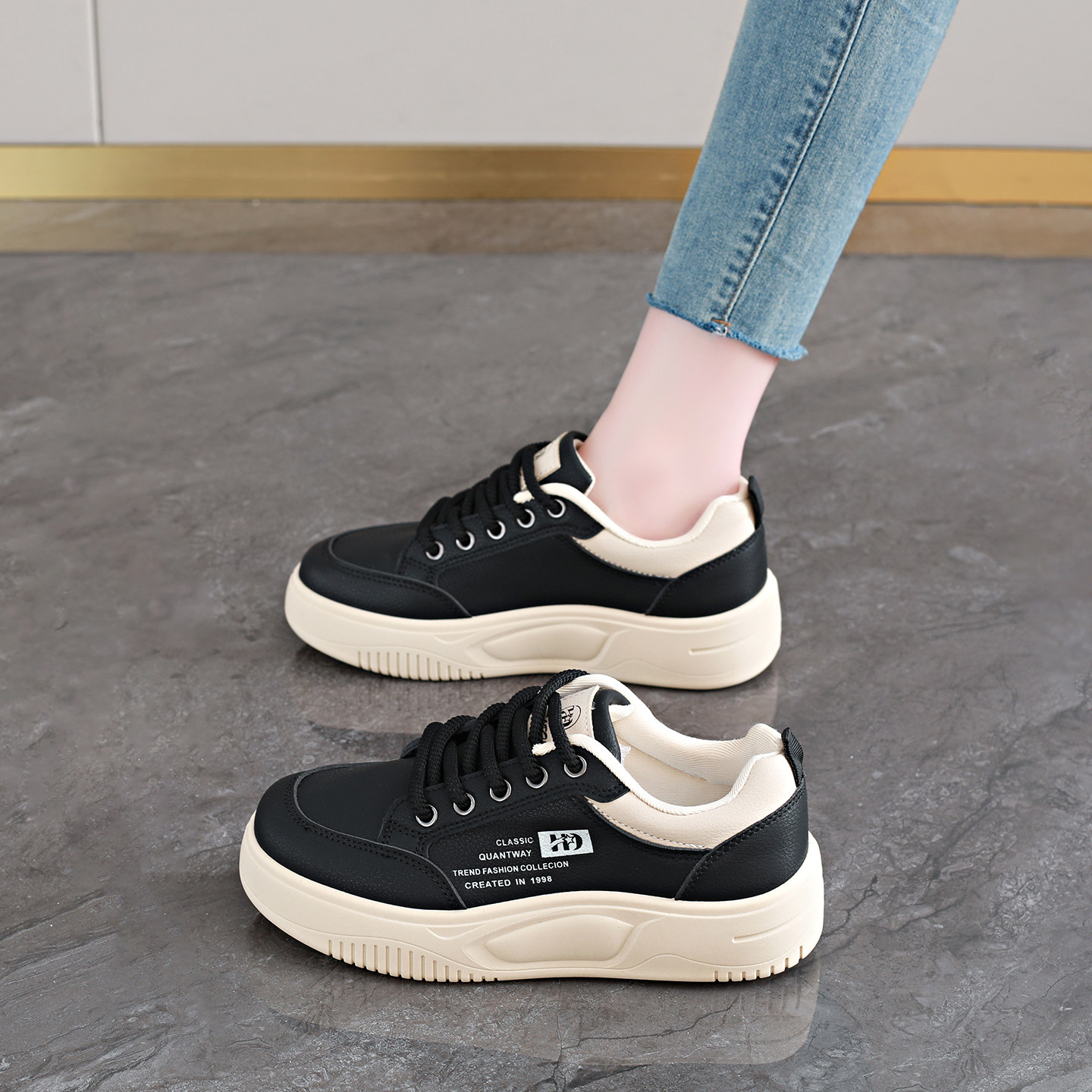 2026夏季 女鞋 小黑鞋 子 潮流男鞋 运动鞋 百搭休闲鞋 特步空军一号板鞋