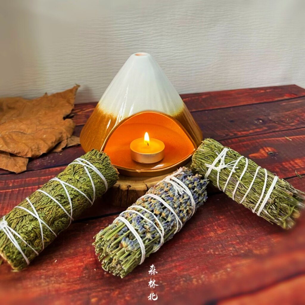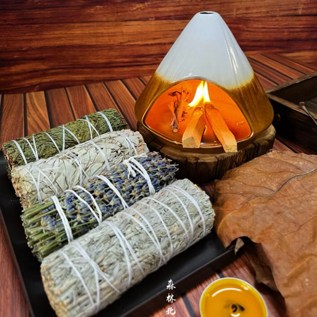 森林北手作陶瓷香薰炉圣木鼠尾草净化冥想熏香托盘创意氛围感礼物