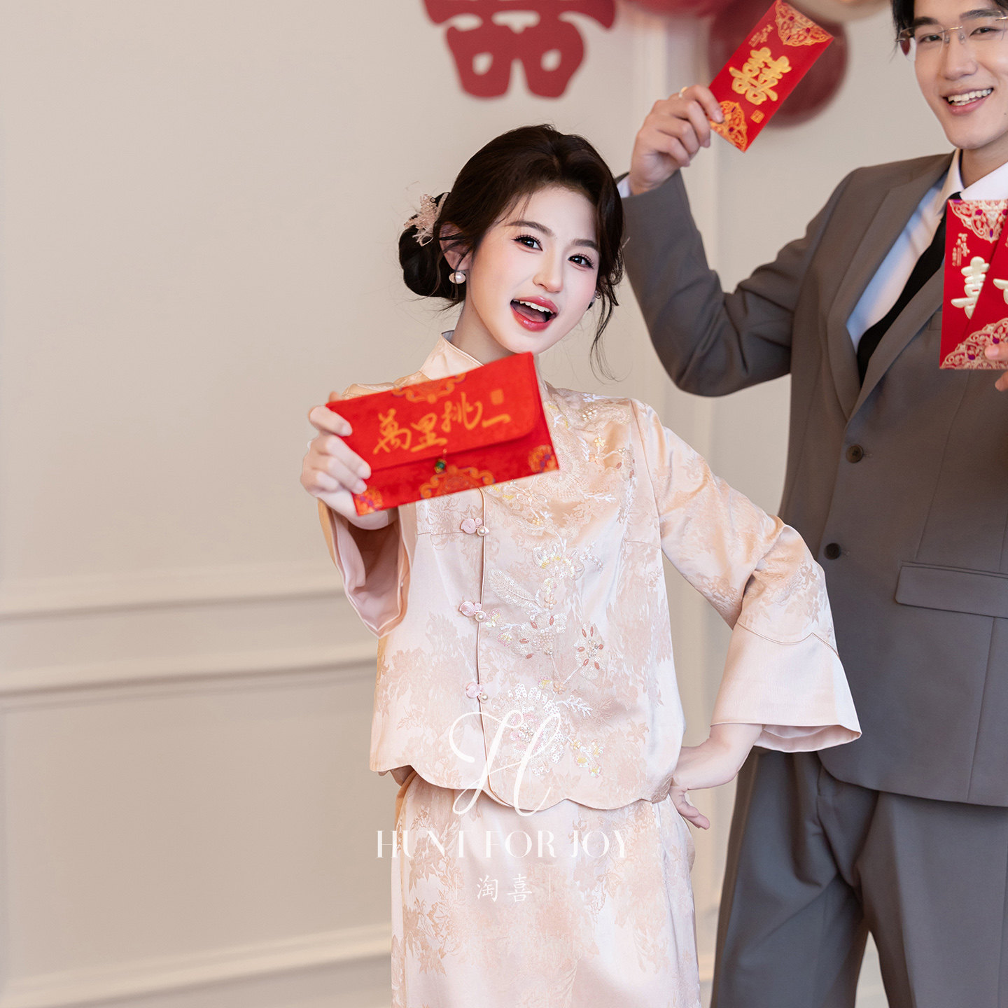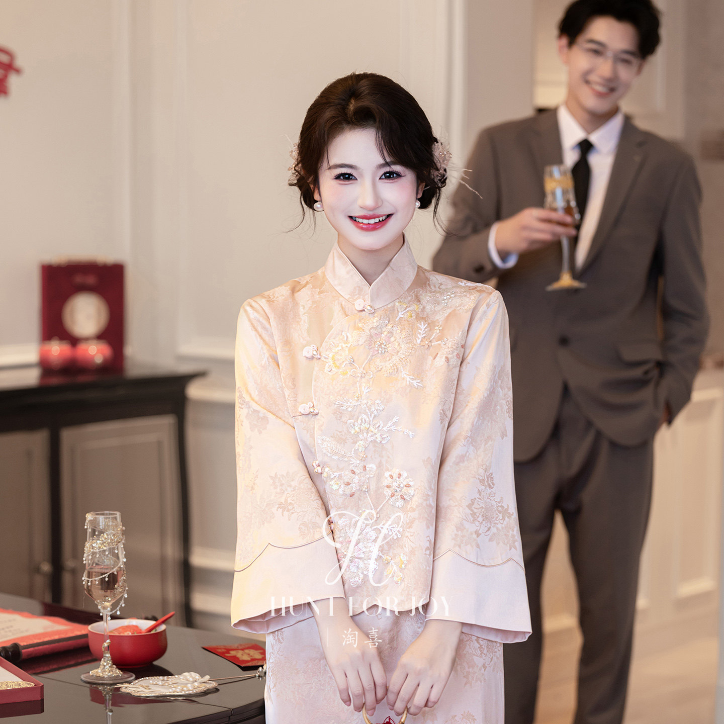淘喜原创「温言」粉色小个子新中式 礼服女 订婚旗袍敬酒服新娘夏季