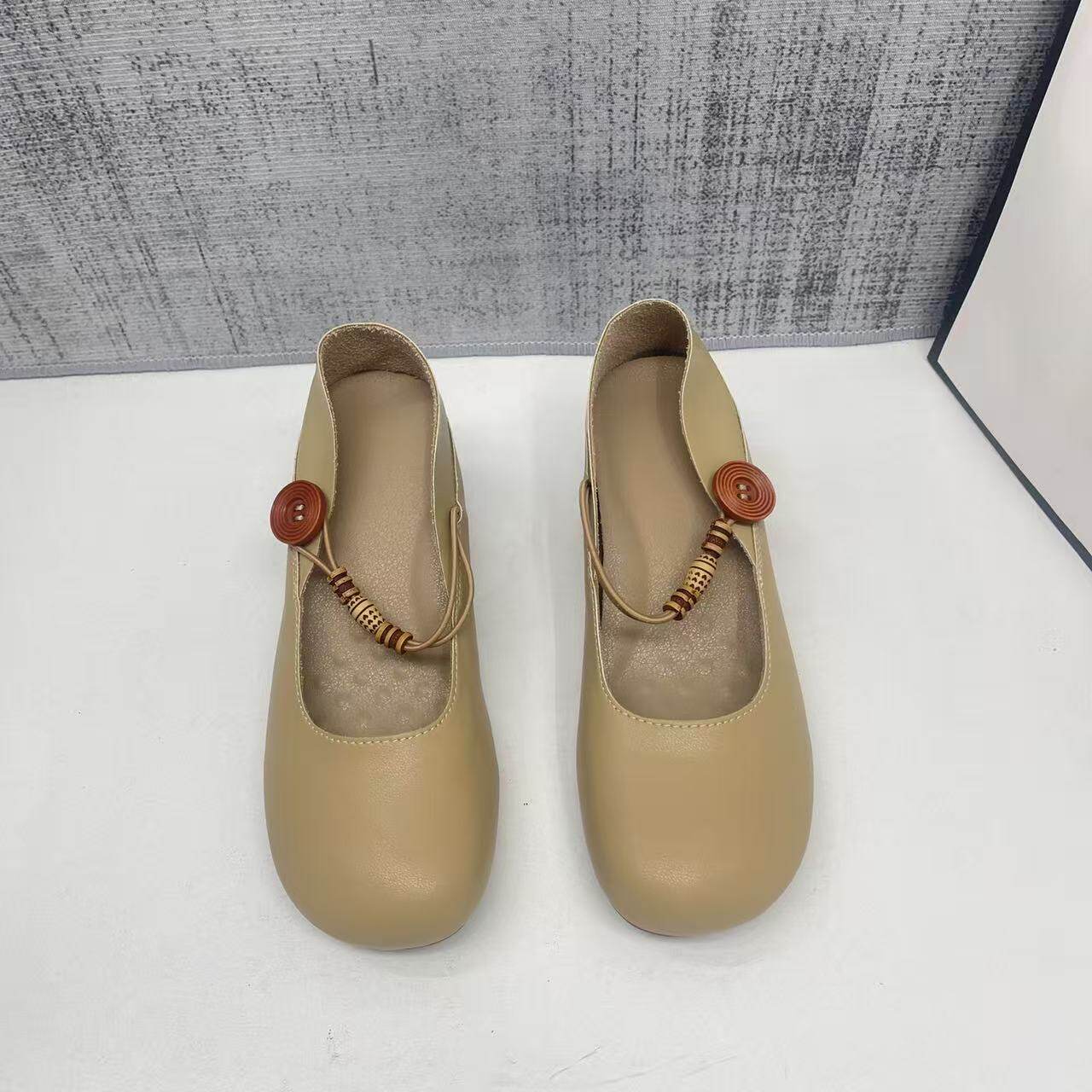 2026春新款 真皮 骄屿法式 复古波点玛丽珍鞋 黑色通勤浅口芭蕾单鞋