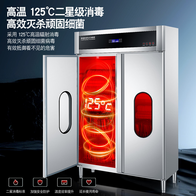 王大厨高温商用不锈钢消毒柜650L大容量双开门热风循环餐具消毒柜由
