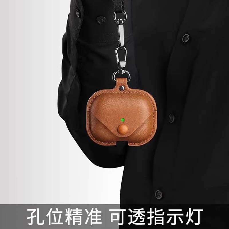皮质一体不掉盖pro2 优思顿适用airpods4保护壳airpodspro3代保护套苹果耳机三代全包二代带挂绳air男生一体式