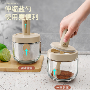 盐罐调味罐厨房家用调味瓶 佳帮手伸缩调料盒勺盖一体调料罐密封装由
