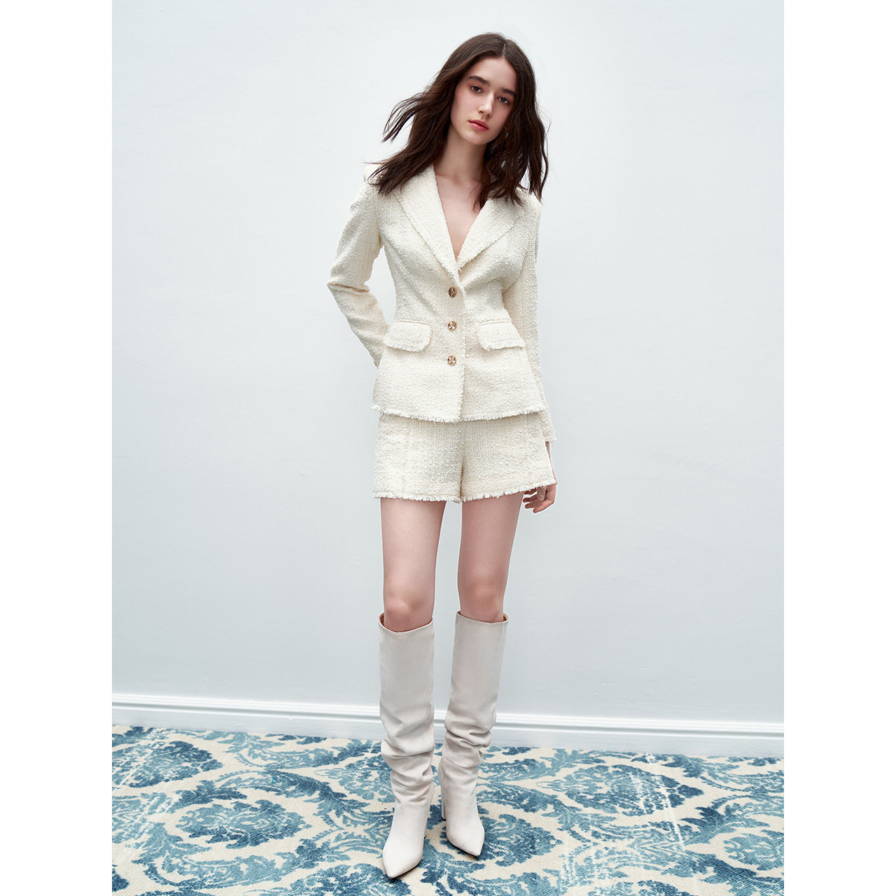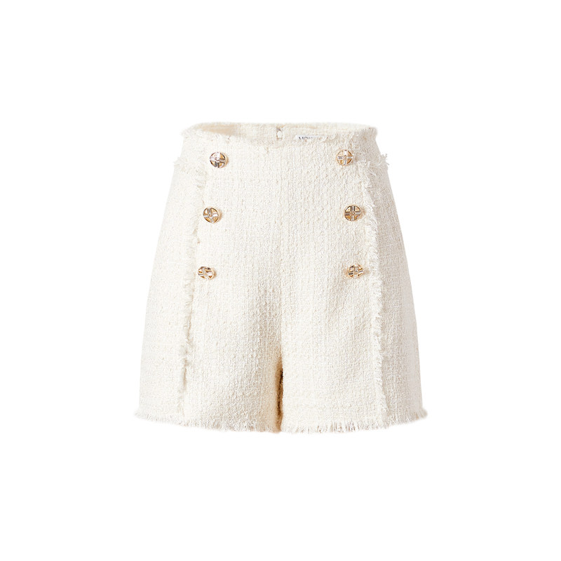 小香风粗花呢流苏A字高腰短裤 女 摩萨克法式 商场同款