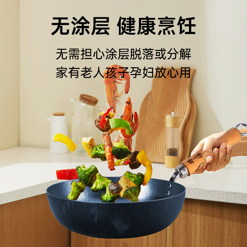 炒锅家用不粘锅无涂层燃气灶适用 章丘炒菜锅传统铁锅官方旗舰老式