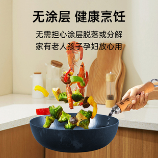 康巴赫Pro版 真钛0涂层炒锅无涂层家用不粘锅不锈钢炒菜锅 新品