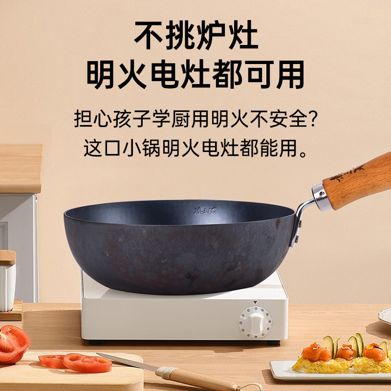 平底炒菜锅小炒锅锅电磁炉专用无涂层家用锅 章丘铁锅官方旗舰正品