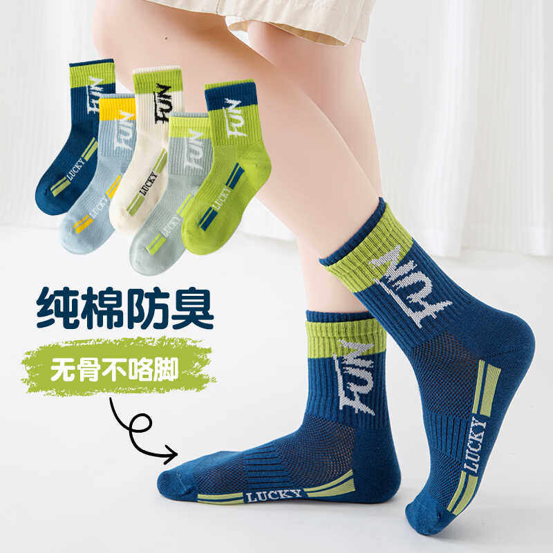 运动防臭中筒女童男童学生0402 16岁儿童袜子春夏季